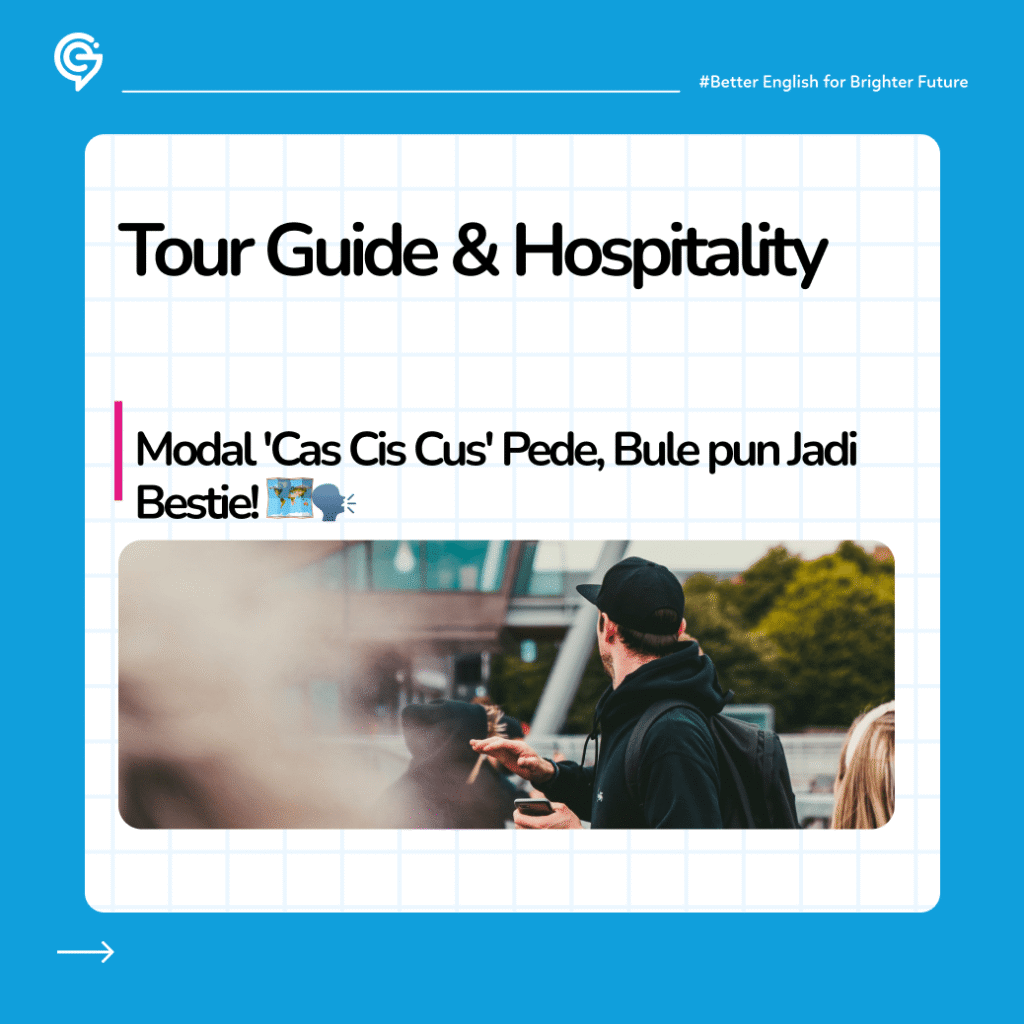 Punya speaking yang fasih plus logat yang oke? Sektor pariwisata butuh Teman Global banget. Jadi tour guide buat turis asing atau kerja di hotel bintang lima itu butuh English skill yang di atas rata-rata.