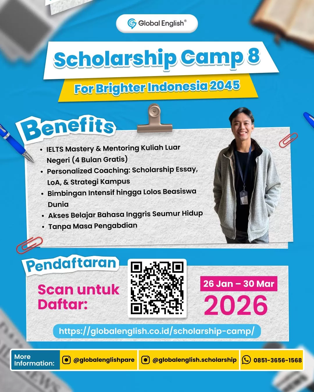 Kami memahami bahwa menembus beasiswa luar negeri (seperti LPDP, AAS, Chevening) membutuhkan persiapan teknis yang matang, terutama dalam skor IELTS. Scholarship Camp (SC) dirancang khusus oleh Global English untuk memfasilitasi para scholarship hunter.